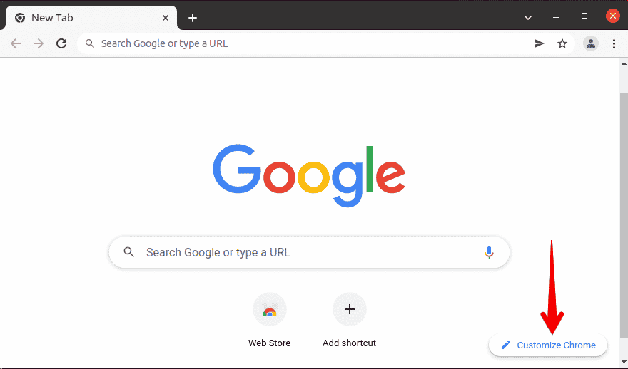 On the new tab page, click the customize button in the .